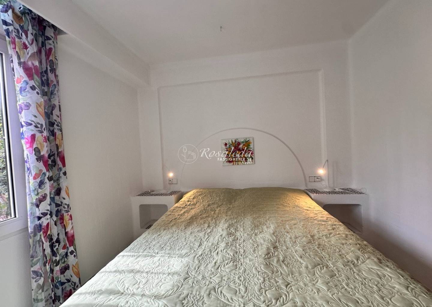 El apartamento ofrece 2 dormitorios, 1 baño y un salón luminoso y aireado con acceso directo al amplio balcón con orientación este/oeste, ideal para desayunar al sol o disfrutar de la brisa por la tarde. La vivienda se vende parcialmente amueblada y está equipada con aire acondicionado, electrodomésticos y armarios empotrados.