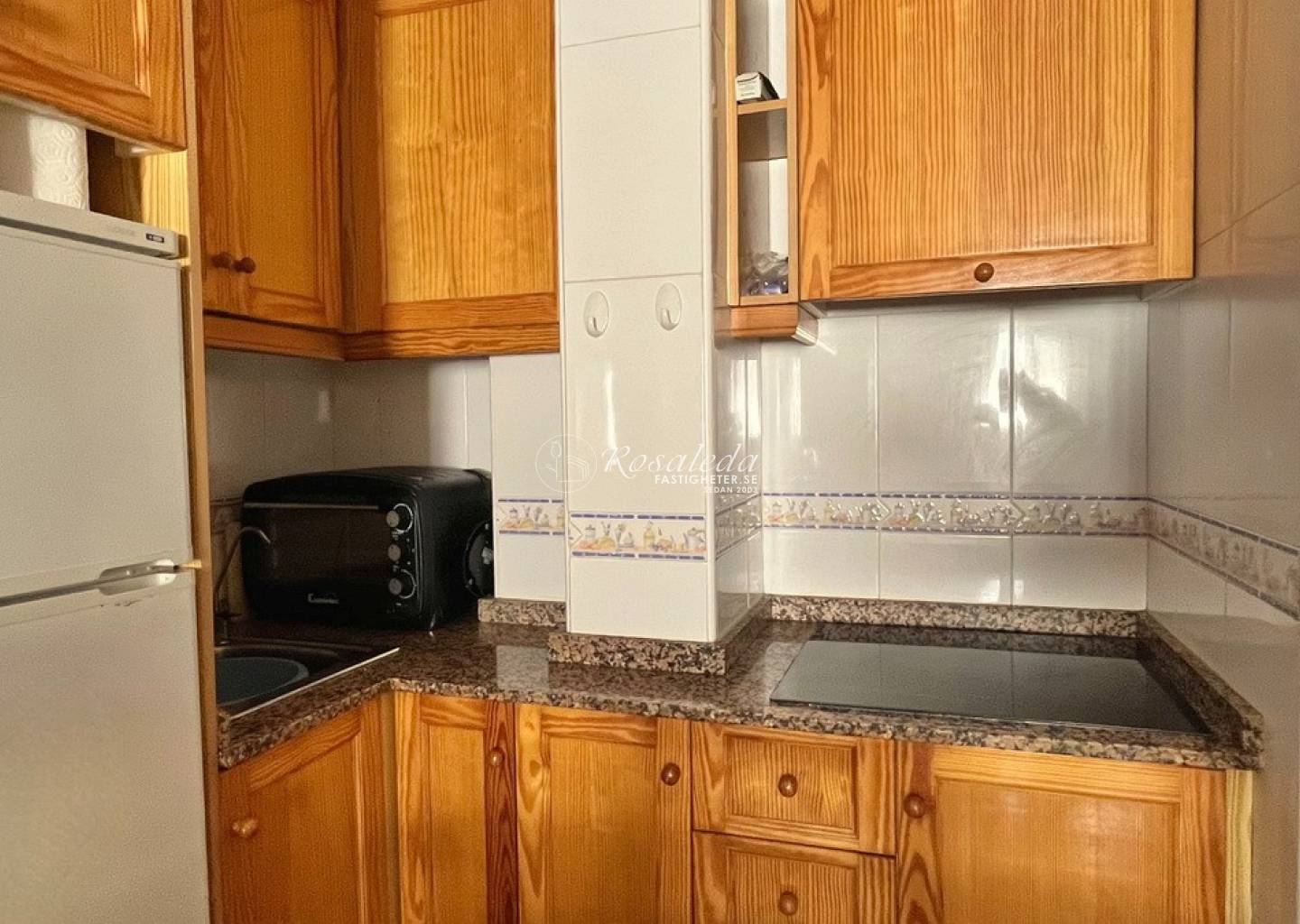 El apartamento consta de una pequeña cocina abierta con salón y balcón. El apartamento es luminoso y acogedor y dispone de dos dormitorios y un baño. Y lo más importante es que tiene restaurantes, bares y tiendas a la vuelta de la esquina. Además, esta propiedad cuenta con una bonita piscina donde podrá refrescarse después de pasar todo el día en la playa.