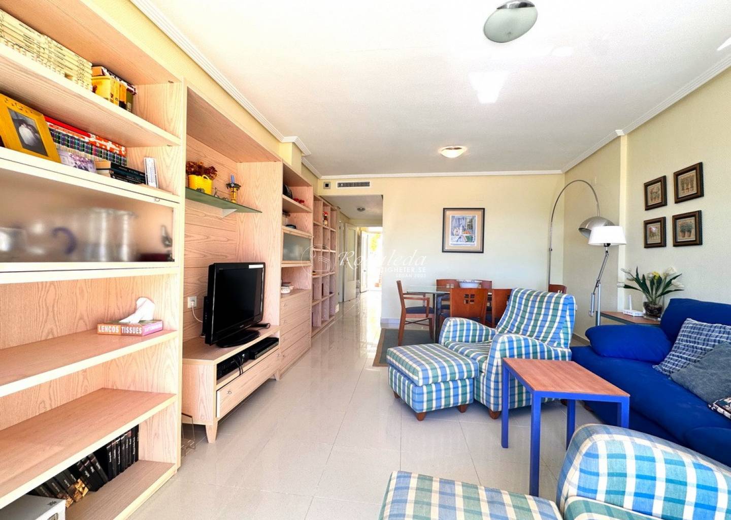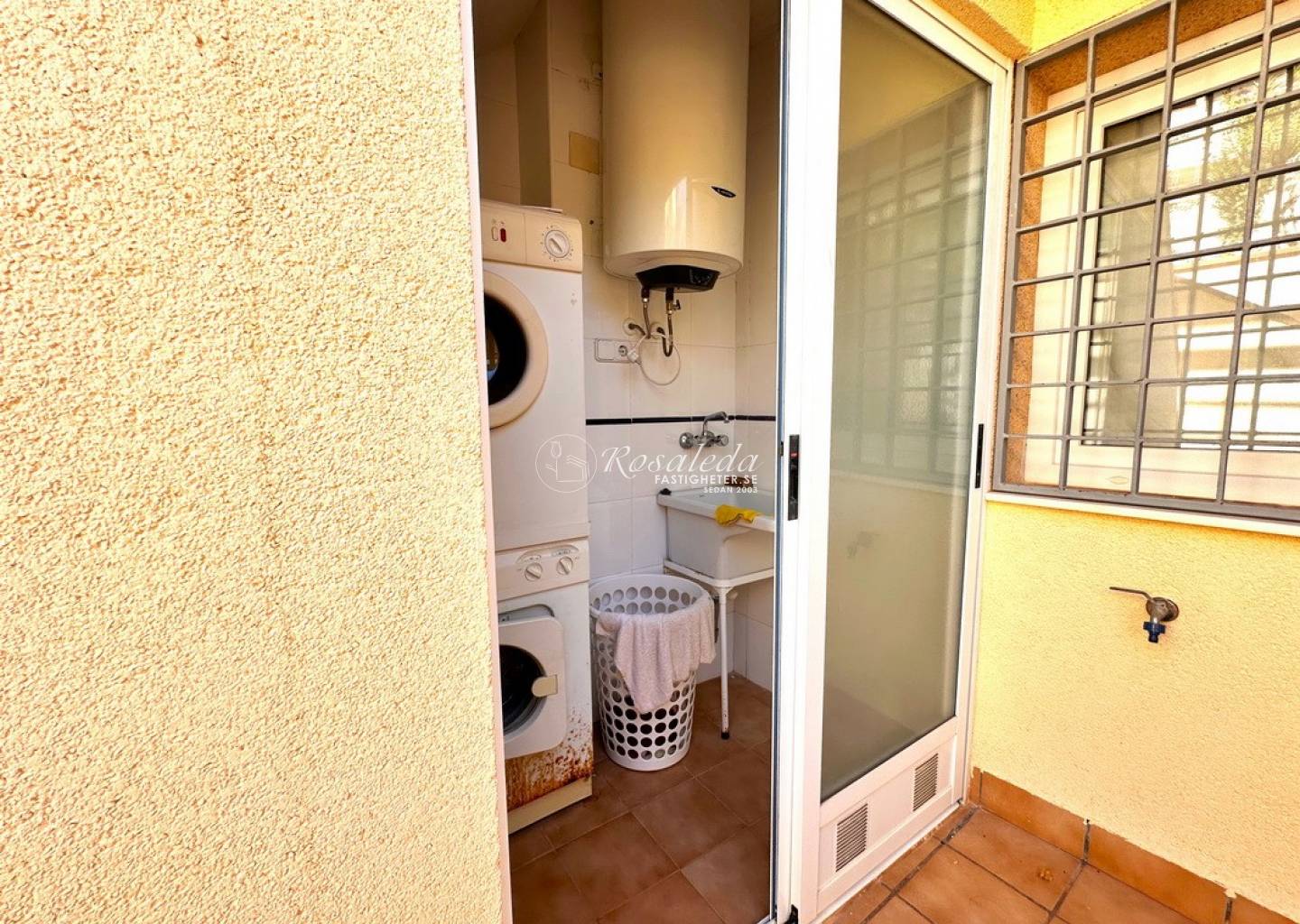 When you enter you have a hall to hang up your clothes and put your shoes. Then you come to the large kitchen which has the laundry room right outside, here you will also find the stairs up to the large roof terrace which is just begging to be furnished with a lounge group and perhaps an outdoor kitchen... Back into the house you have a door that leads down to the garage and straight ahead is the dining room/living room with glass doors out to the private pool area with its endless views of the sea. Here you will also find 4 spacious bedrooms and 2 bathrooms of which one is ensuite to the main bedroom and one bedroom with a view has been converted into a study, imagine sitting and working here, with this view!!!