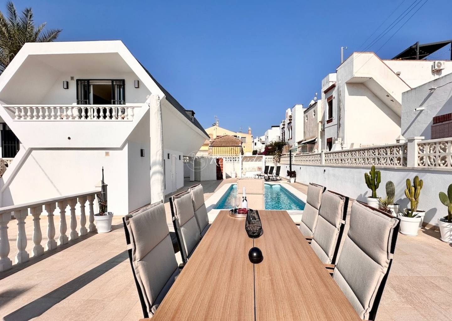 Are you looking for a turnkey holiday home where style meets functionality? This is a rare opportunity to acquire a completely renovated, architect-designed villa on a sunny corner plot in the heart of popular Torrevieja.