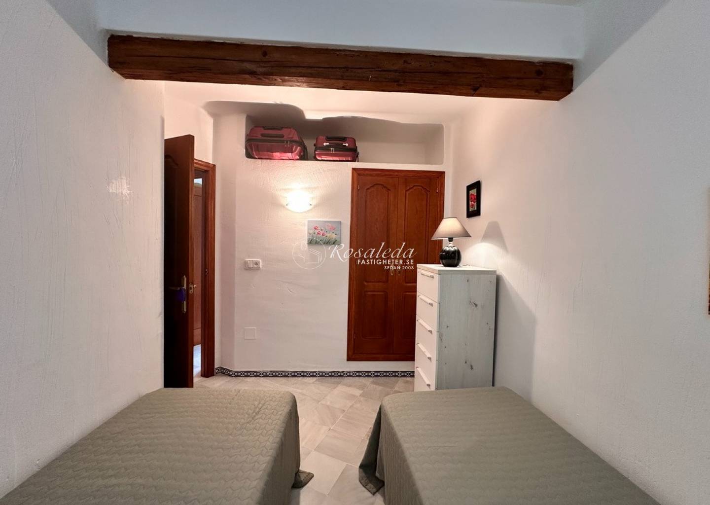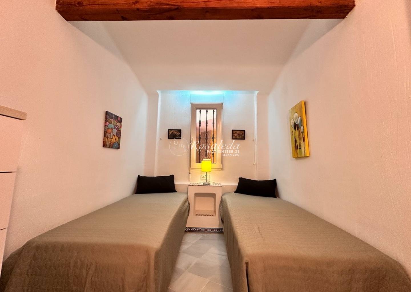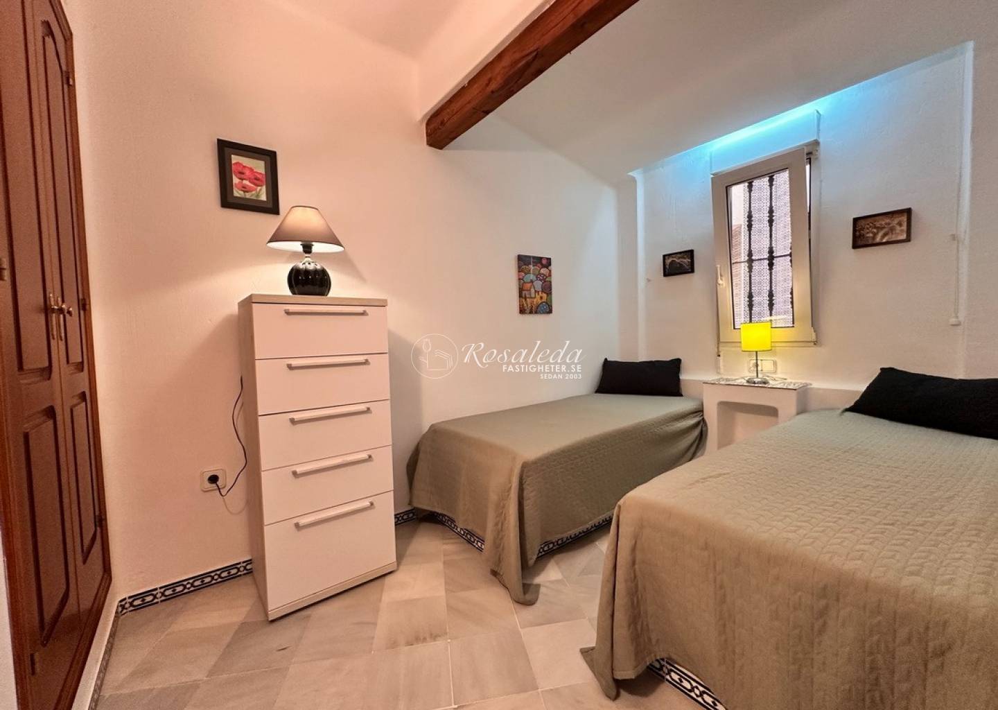 Lägenheten erbjuder 2 sovrum, 1 badrum samt ett ljust och luftigt vardagsrum med direktaccess till den generösa balkongen i öst/väst-läge – perfekt för frukost i solen eller skön kvällsbris. Bostaden säljs delvis möblerad och är utrustad med luftkonditionering, vitvaror, och inbyggda garderober.